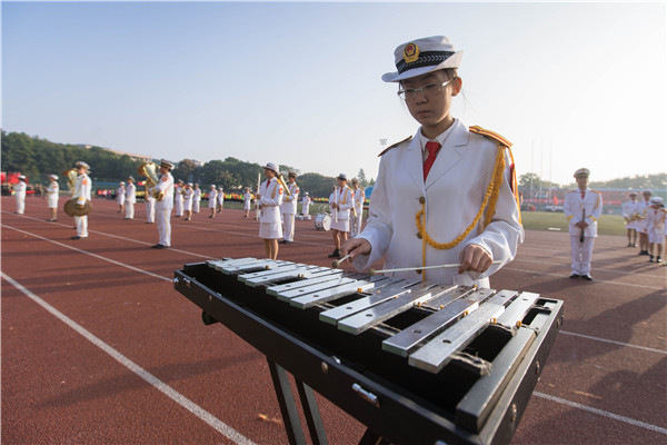 由雄狮与动感热舞队员上演的富有青年人热情与朝气的节目正式登场。身披金黄战袍的狮队在高桩上秀出各种高难度动作,俯身、起跳、飞腾、前后翻、站肩,赢得运动场上师生阵阵喝彩。伴随着阵阵鼓声和呐喊声,雄狮们踏着矫健的步伐跃起,或180度转身,或翘首仰视,在千姿百态的舞动中令人叹为观止。几只雄狮奔向远处,与巨龙相互嬉戏,它们在阳光的沐浴下金光闪闪,气势不凡,昂首挺胸,仿佛就要一同迫不及待地腾飞。七只瑞狮齐聚,吐出“勤读力耕,立己达人”“欢庆十九大,助推双一流”的对联,寄语未来,祝福学子前程。而由江南style、PPAP等当下脍炙金曲编制成的动感热舞,便宛如此间的一股清流,在轻柔中不失运动之美,在灵秀中不忘运动精神的展现。