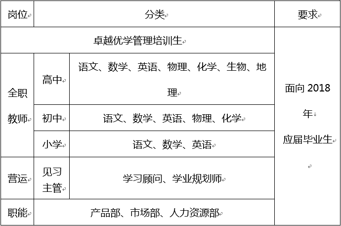 更多卓越教育校园招聘信息,微信关注【卓越优学招聘】