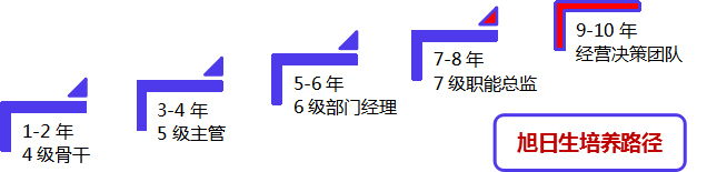 高关注:董事长及总裁在甄选环节深度参与,总监级导师、经理级带教、资深HR和往届旭日生Buddy入职前后全程引导,“四位一体”培养责任人制度和成熟旭日生培养与发展体系,助你快速职场起航。