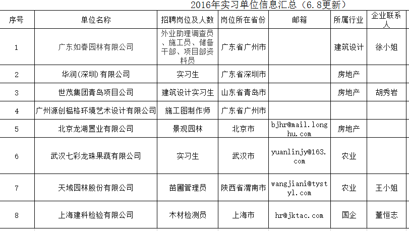 2016年实习单位信息汇总(5.26更新)